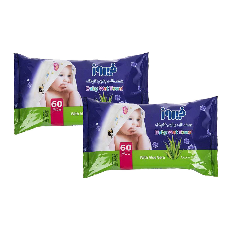 دستمال مرطوب کودک فیروز مدل آلوئه ورا مجموعه 2 عددی