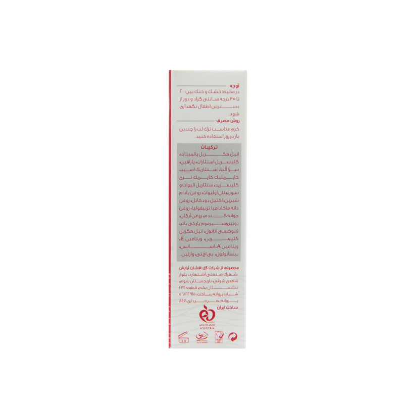 این محصول حاوی روغن بادام شیرین ، روغن دانه ماکادمیا، روغن جوانه گندم، روغن آرگان ، شی باتر و بیسابولول میباشد و بخاطر این مواد مغذی پوست ، ترک لب ها را زودتر و موثر تر از بین میبرد. روغن بادام شیرین ٬ سر شار از ویتامین A و ویتامین E است .این روغن بافتهای پوست را نرم کرده و در رفع التهاب های پوستی موثر است . روغن ماکادامیا دارای خواص ضد التهاب می باشد . این روغن براحتی از پوست جذب شده و باعث هیدراناسیون پوست میشود. روغن جوانه گندم موجب لطافت و شفافیت پوست لب میشود .این ترکیب یک مرطوب کننده طبیعی می باشد و اجازه نمی دهد خاصیت ارتجاعی پوست لب از بین برود. روغن آرگان دارای خواص مغذی٬ آنتی اکسیدان و ترمیم کنندگی می باشد٬ همچنین این روغن باعث حفظ رطوبت پوست لب می شود. بیسابولول داری خواص ضد التهابی و ضد حساسیت می باشد . روغن شی باتر دارای خواص ترمیم کنندگی است که به دلیل داشتن سینامیک اسید ٬یک مرطوب کننده گیاهی موثر می باشد. ویتامین A این ویتامین جزء ویتامین های محلول در چربی است و به راحتی جذب پوست می گردد. برای تقویت غشاء سلولی مفید است. ویتامین E به نوسازی سلولها کمک کرده و میتواند رطوبت از دست رفته را به پوست برگرداند.
