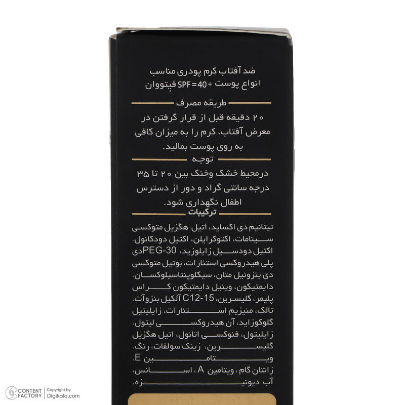دستهبندی: کرم ضد آفتابمیزان رنگ: رنگینوع ضد آفتاب: کرمناحیه استفاده: دست , صورتSPF: 40سازگار با پوستهای : انواع پوستحجم ضد آفتاب : 30 میلیلیترویژگیهای ضدآفتاب : محافظت کننده در برابر اشعه UVA , محافظت کننده در برابر اشعه UVBوزن : 20 گرمماندگاری : 2 ساعتنمایش بیشتر
