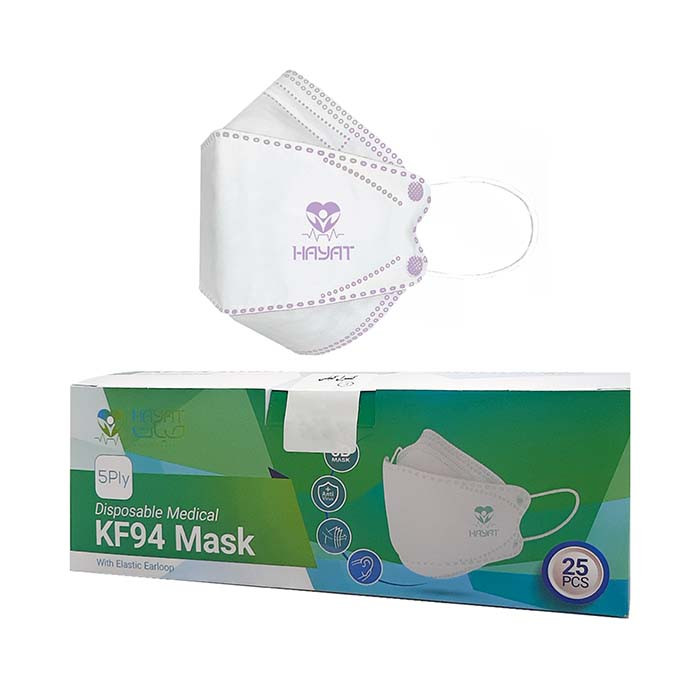 ماسک تنفسی حیات پوشش پاک مدل پنج لایه سه بعدی بسته 25 عددی بنفش