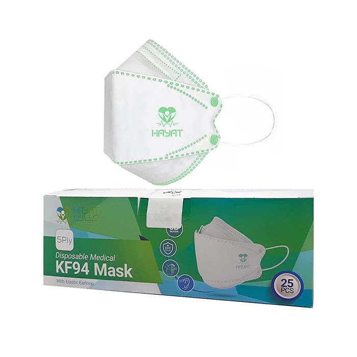 ماسک تنفسی حیات پوشش پاک مدل پنج لایه سه بعدی بسته 25 عددی سبز