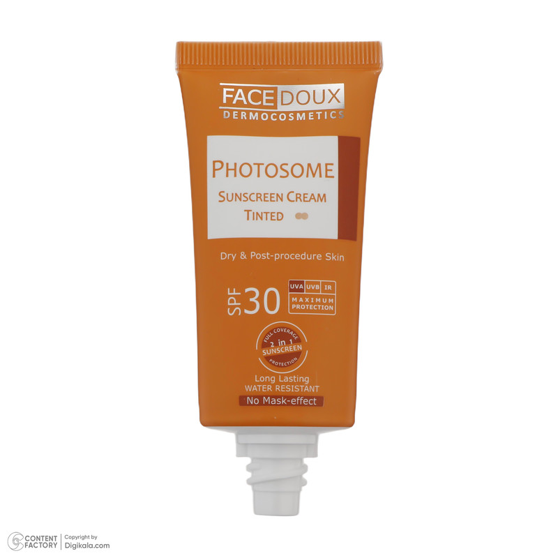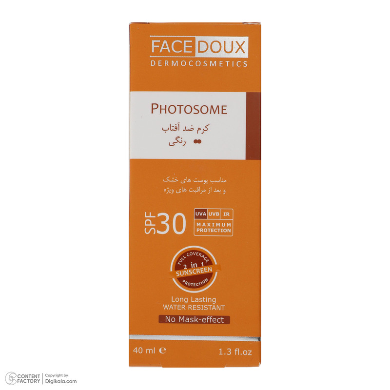 کرم ضد آفتاب رنگی فیس دوکس SPF 30 مدل photosome 02 محافظ اشعه UVA و UVB، ضد آب، مناسب پوست های خشک حجم 40 میلی لیتر