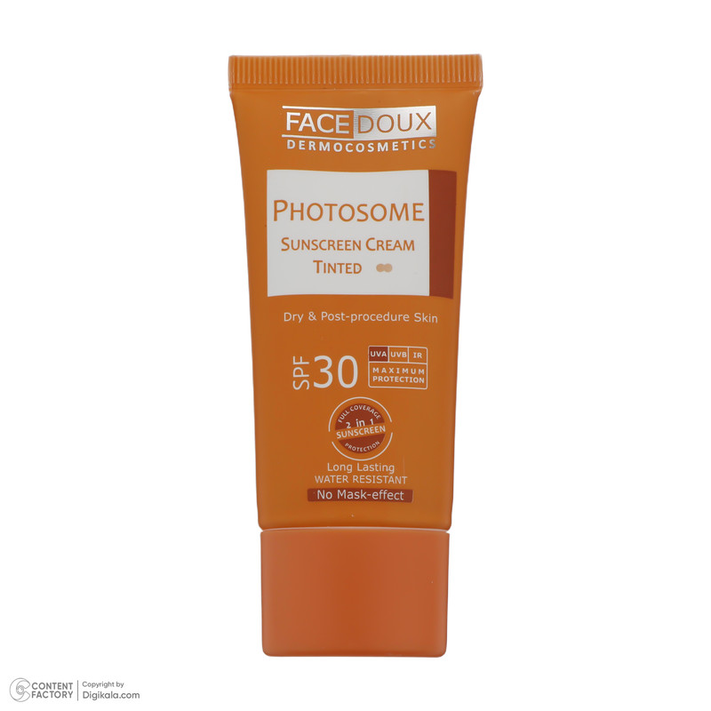 کرم ضد آفتاب رنگی فیس دوکس SPF 30 مدل photosome 02 محافظ اشعه UVA و UVB، ضد آب، مناسب پوست های خشک حجم 40 میلی لیتر
